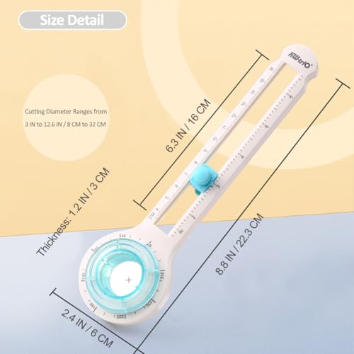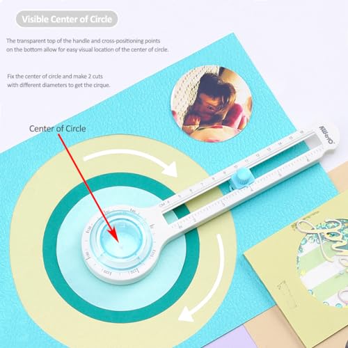 Easy to Use -The circle paper cutter is lightweight, portable, and incredibly user-friendly. Equipped with a clear scale ruler featuring easily readable numbers, you can effortlessly set your desired size by unscrewing, sliding, and locking the knob to the corresponding location on the ruler. Once set, simply place the cutter on the paper, rotate it, and voila – a flawless circle cutout in seconds. This handy tool is a must-have for any paper crafting enthusiast or professional.