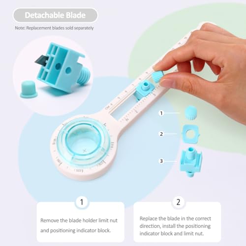 Circe Cutter for Paper Crafting Circular Cutter Tool Visible Center of Circle Rotary Compass Circle Cutter Adjustable Cutting Diameter Ranges from 3 in to 12.6 in (Cyan & White, Large)