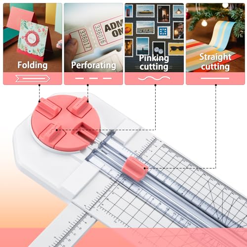 Paper Cutter for Craft:Paper Trimmer, Perforator, Folding, Pinking Cutting on Paper, Vinyl, Cardstock, Photo for Scrapbooking and Cardmaking Plus Sideways Ruler, Pink, Worklion
