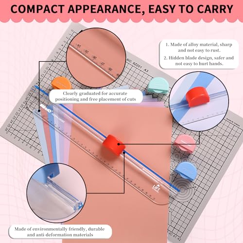 【Efficient to Cut】Paper cutter for cutting A3, A4, A5 paper, scrapbook, pvc photos, photos, cards, films (within 1mm), etc. You can cut up to 6 sheets A4 paper at once, please use them with a cutting mats(not included).The transparent ruler comes with clear length scales to help you cut accurately.