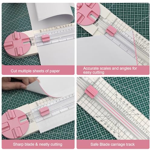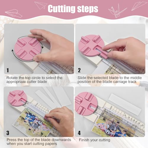 Paper Trimmer, 4 Styles Craft Paper Cutter Multi-Function Scrapbooking Tool for Cutting Paper Photos Scrapbook Postcard (Straight, Wave, Perforated and Creasing Lines) (Pink)