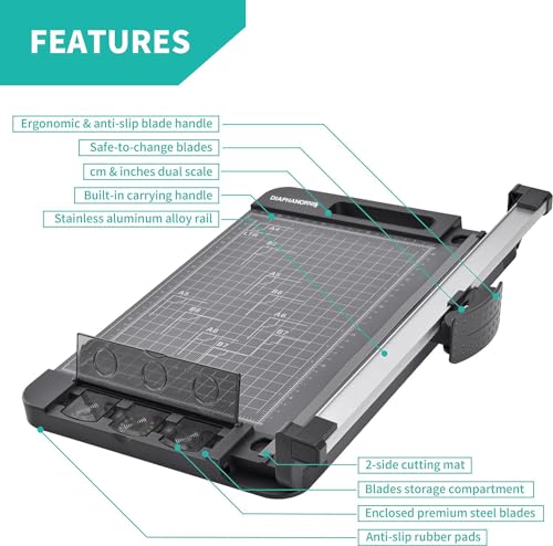 【Versatility】DIAPHANORNIS paper cutter and trimmer can satisfy various trimming needs; your ideal cutting tool for craft projects like making invitation/greeting cards; it is a must-have for home, office, and school