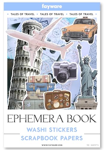 300+ Travel Stickers for Scrapbooking & 20 A5 Papers – Pre-Cut Washi Stickers for Journaling, Vintage Travel Scrapbooking Supplies, FAYWARE Junk Journals Stickers