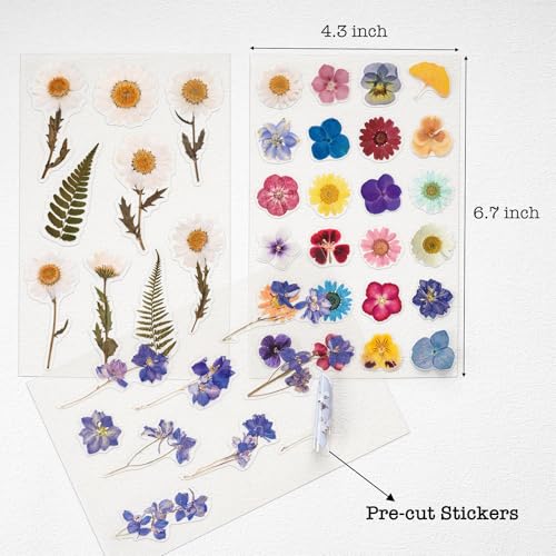 Knaid Pressed Flower Themed Stickers (Assorted 486 Pieces, 36 Sheets) Dried Floral Resin Stickers Decals Botanical Journaling Sticker for Scrapbook Supplies Junk Journal Bullet Journal Planner Laptop