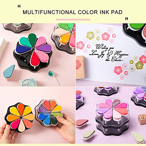 【Petal Shape Pad】Scrapbook ink pads are designed in rainbow petal shape, small size great for kids’ finger to hold. Pull out for quick use and push in for tidy storage without mess on desktop.