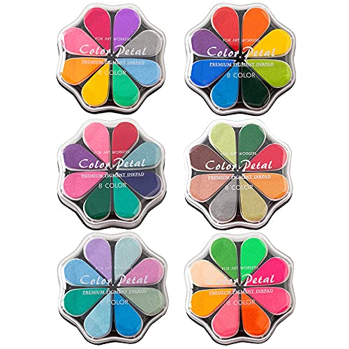 【48 Colors】 Comes in 6 packs ink pads including 48 vivid colors. Excellent for kinds of color selection and craft projects. Pigment inks show up nicely on absorbent paper, wood or fabric.