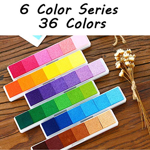 Aphlos Craft Ink Pad Stamps DIY Color, 36 Colors Rainbow Finger Ink Pad for Kids Finger-Print Drawing, Small Rubber Stamp