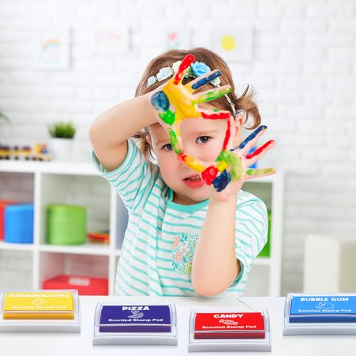Washable stamp pads for kids aren’t just visually stimulating, they also cater to the sense of smell. With 12 distinctive snack scents, you can experience a delightful aroma with each stamp. A nice way to make those learning and crafting activities more engaging.