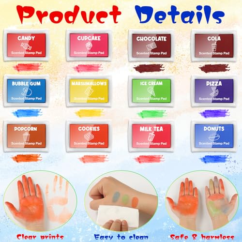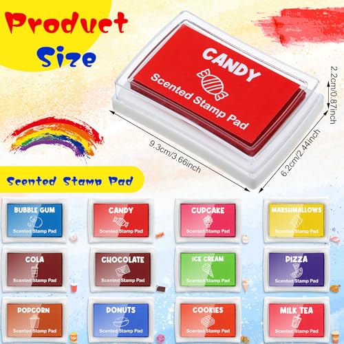Vibrant Color and Fragrance Variety: be entranced by the variety of 8 vivid colors and 12 delightful scents from our finger print ink pads collection; Each stamping experience is a sensory delight, a fusion of color and aroma