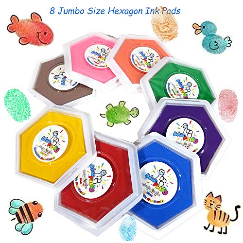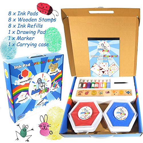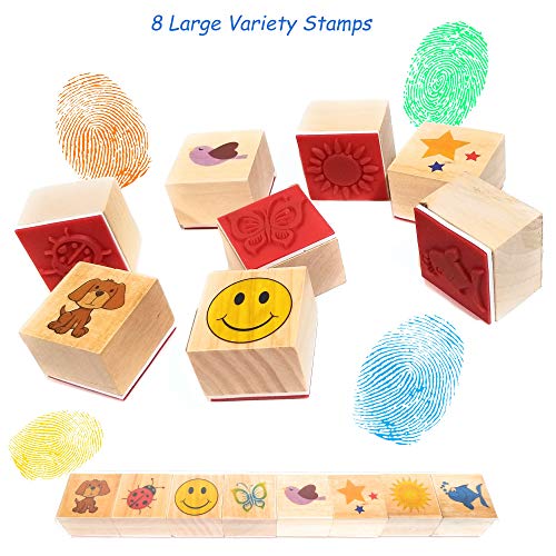 Washable Stamp Pads for Kids Arts and Crafts Jumbo Non-Toxic Ink with Wooden Stamps, Drawing Pad, Marker and Ink Refills