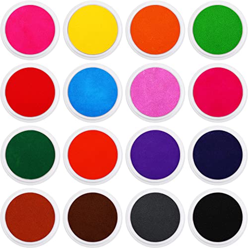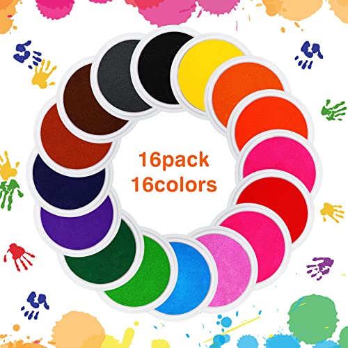 Zhehao 16 Pack 7″ Large Round Craft Ink Pad 16 Colors Rainbow DIY Fingerprint Ink Stamp Pad Washable Ink Pad for Kids Preschool Stamp for Rubber Stamp Finger Painting Classroom Preschool Must Haves