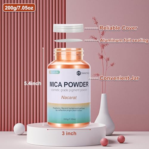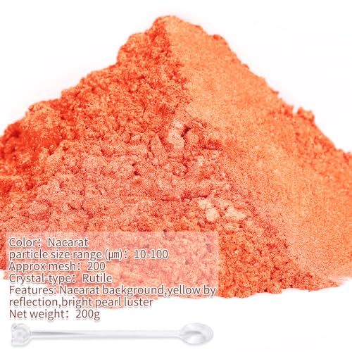 Mica Powder,7.05OZ(200g),Nacarat Mica Powder Pigment for Epoxy Resin,Lip Gloss,Car Paint,Dye,Soap Making,Nail Polish,Epoxy Resin,Candle Making,Bath Bombs