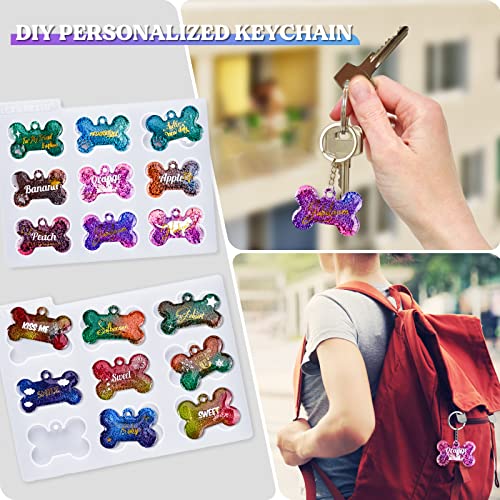 LET’S RESIN Pet Tag Resin Molds Silicone For Cat Dog | Epoxy Resin & UV Resin Bone Shape Keychain Molds with 10Pcs Key Ring & 10pcs Jump Ring, DIY Keychain Pendant Charm Crafts