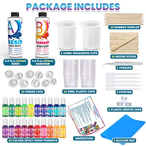 13OZ Epoxy Resin Kit – Clear Resin Epoxy for Crafts, Resin Starter Kit for Beginners, Resin Kits and Molds Complete Set for Adults with 20 Colors Resin Pigments