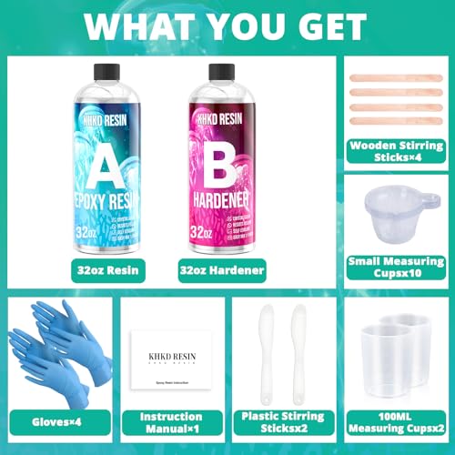 ใ€๐’๐ฎ๐ฉ๐ž๐ซ ๐•๐š๐ฅ๐ฎ๐ž ๐„๐ฉ๐จ๐ฑ๐ฒ ๐‘๐ž๐ฌ๐ข๐ง ๐Š๐ข๐ญใ€‘: Our ๐Š๐‡๐Š๐ƒ ๐‘๐„๐’๐ˆ๐ Epoxy Resin Kits Included: 1x 32 oz crystal clear epoxy resin, 1x 32 oz crystal clear hardener, 4x gloves, 4x wooden stirring sticks, 2x 100 ml measuring cups, 2x plastic stirring sticks, 10x small measuring cups,1x user guide. The perfect mix of everything needed to help you easily make epoxy resin Artcraft, experience the fun of resin handmade DIY making, and hurry up to create your unique artwork
