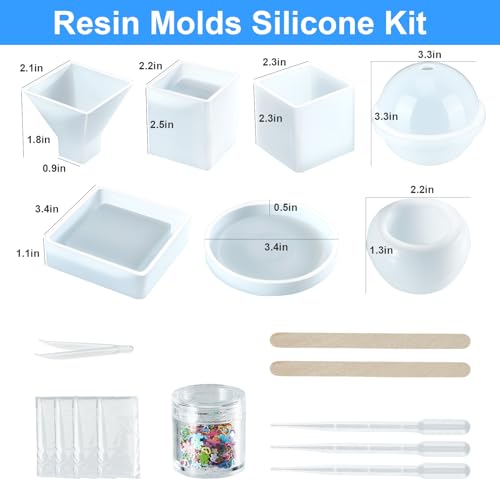 Resin Molds Silicone Kit 20Pcs,Epoxy Resin Molds Including Sphere,Cube,Pyramid,Square,Round, Used for Create Art,DIY,Ash Trays,Coasters,Candles.Bonus Decorative Sequins and The Complete Set Tools