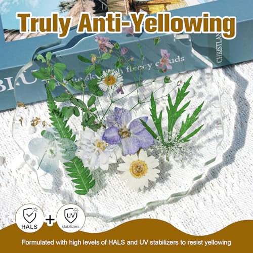 Enhanced UV Resistance: This epoxy resin is formulated with advanced HALS and UV stabilizers, ensuring that your projects remain bright and vibrant with no yellowing over time, making it highly durable and long-lasting.