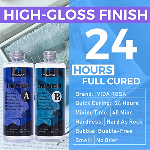 Vida Rosa Epoxy Resin Kits for Beginners with molds,Dried Flower,600ml/ 21.16oz Crystal Coating for Art, Craft, Jewelry Making, River Tables,2 Gloves, 2 Measuring Cup and 2 Wooden Sticks