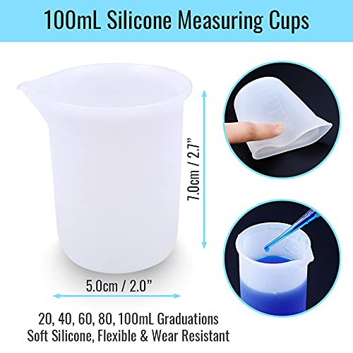 【100ml Measuring Cups】 100ml silicone mixing cups, transparent-white, with 20/40/60/80/100ml scales that you can quickly measure the required amount of resin, accurate and reliable. Angled diversion port design, can make the pouring easy, tidy and clean.