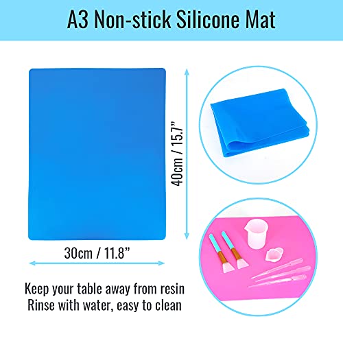 【A3 Non Stick Silicnone Mat】 This silicone mat sheet measures at 40x30cm (15.7×11.8 inch), fit well for your work table. Made of soft silicone, flexible, durable and reuseable. Non-stick, keep your table away from resin, epoxy, glue and paint. Rinse with water after use, easy to clean. Foldable, easy to carry or store.