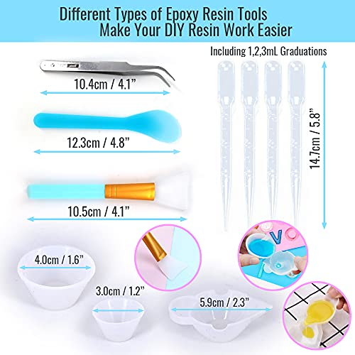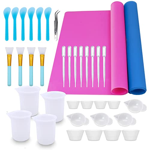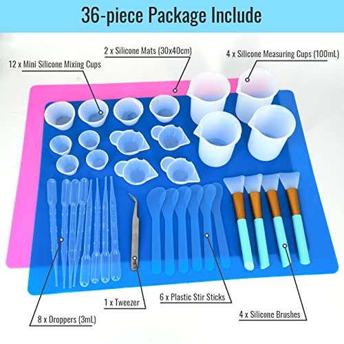 Epoxy Resin Mixing Tools Kit 36Pcs, Reusable Soft Silicone Resin Tools Supplies, Includes A3 Silicone Mats, Measuring Cups, Dropper Pipettes, Stir Sticks, Brushes, Resin Casting DIY Jewelry Making