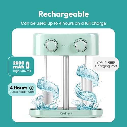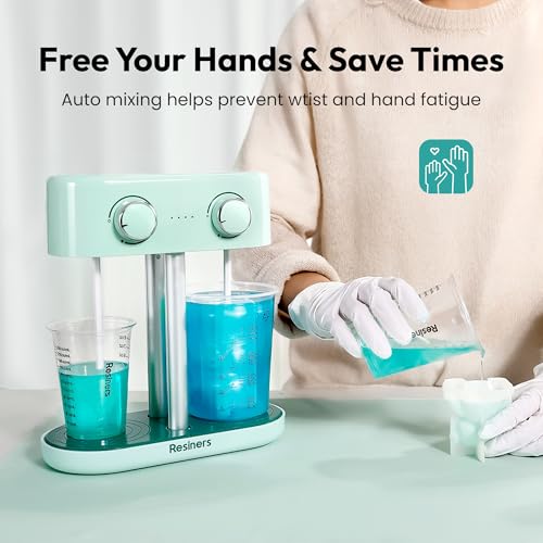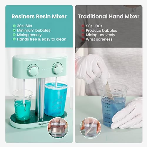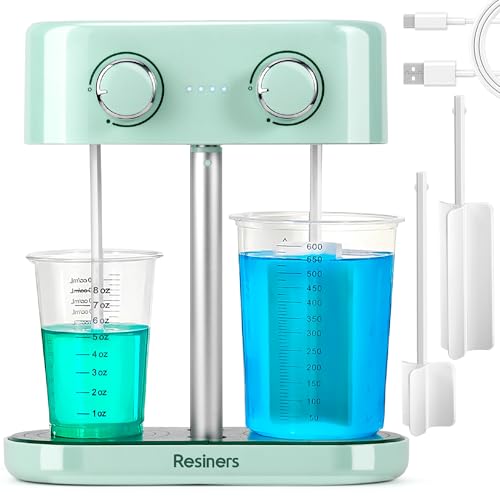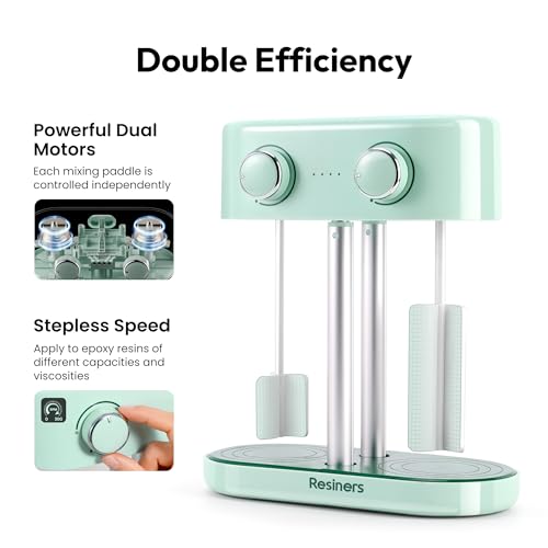 Resiners Dual-Head Resin Mixer, Rechargeable Epoxy Mixer, Stepless Speed & Minimum Bubbles, Electric Stirrer Paddles for Resin,Silicone,Paint Mixing,Soap Making,Resin Tools,DIY Crafts (Patented)