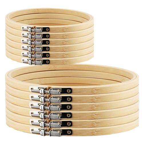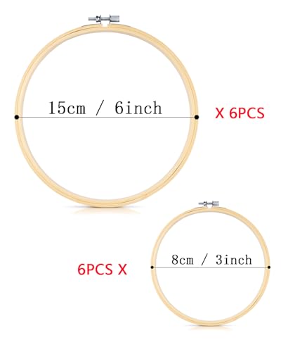 12 Pieces Embroidery Hoops, Bamboo Frame Circle Cross Stitch Hoop Ring Embroidery Hoops Set for Embroidery and Cross Stitch (Bamboo, 3IN *6 + 6IN *6)