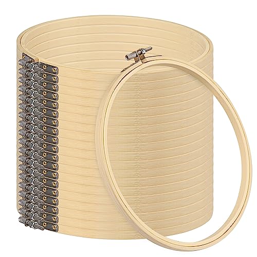 18 PCS Bamboo Embroidery Hoops Set, 8 Inch Adjustable Cross Stitch Rings in Bulk for Needlework, Sewing and Crafts, with Easy Loosen Tighten Mechanism, Ideal for Gifting and Decorating, by GNIEMCKIN.