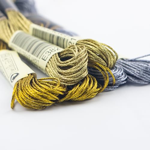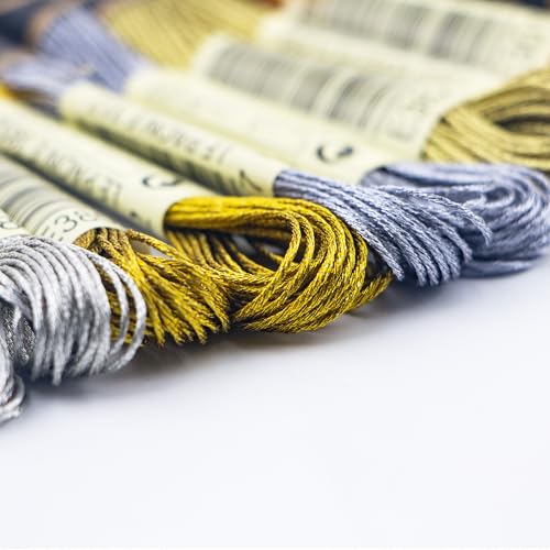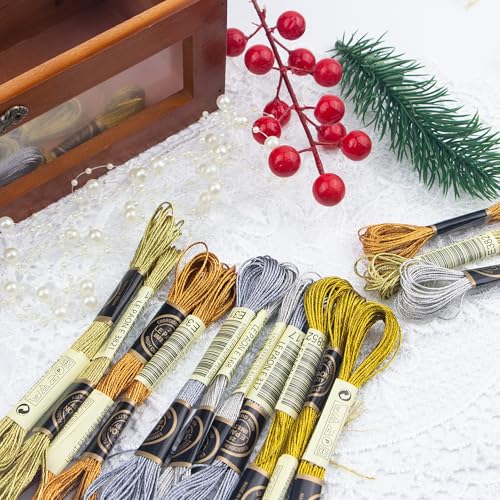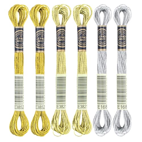 6 Skeins Embroidery Thread, 3 Colors Metallic Embroidery Floss Set, Polyester Cross-Stitch Threads for Hand Embroidery, String Art