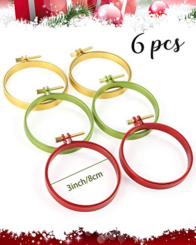 Caydo 6 Pieces 3 Inch Embroidery Hoops Adjustable Circle Cross Stitch Hoop Ring for Christmas Ornaments, Art Craft Handy Sewing(Christmas Color, Aluminum)