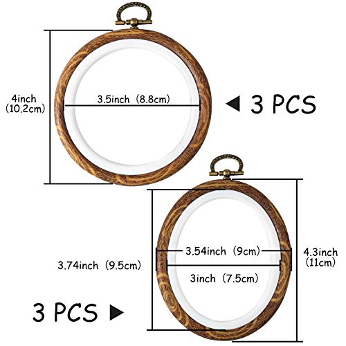 Caydo 6 Pieces 4 Inch Round and Oval Embroidery Hoop Display Frame Circle for Art Craft Sewing and Ornaments
