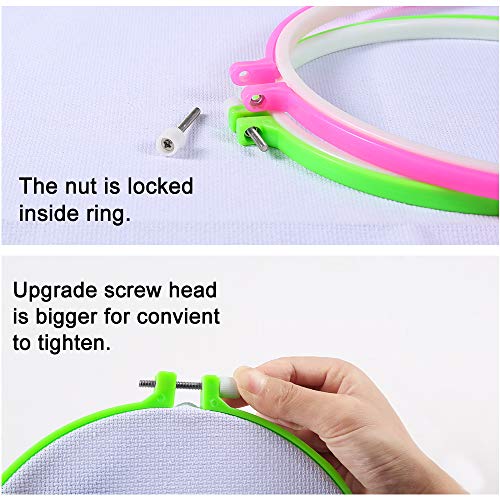 Caydo 6 Pieces Embroidery Hoops and 15 Needles, Plastic Circle Cross Stitch Hoop Ring Embroidery Circle Set, 3.4 inch to 10.4 inch (Multicolor)