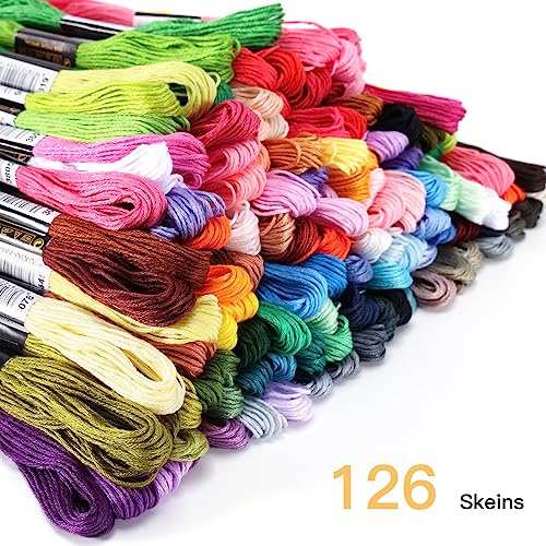 Multicolor Embroidery Floss: 126 skeins of embroidery floss in 126 vivid colors, including blue, green, red, orange, pink, yellow, gray, black, white, etc, meet different embroidery projects