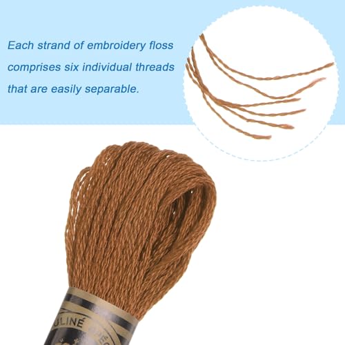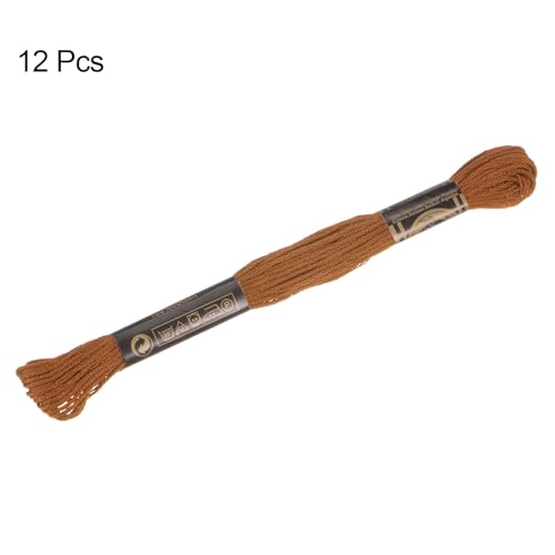 HARFINGTON 12 Skeins Embroidery Floss 8m Each Egyptian Long Fiber Cotton Cross Stitch Thread 26S/2×6 for Embroidery Projects Bracelet, Light Brown