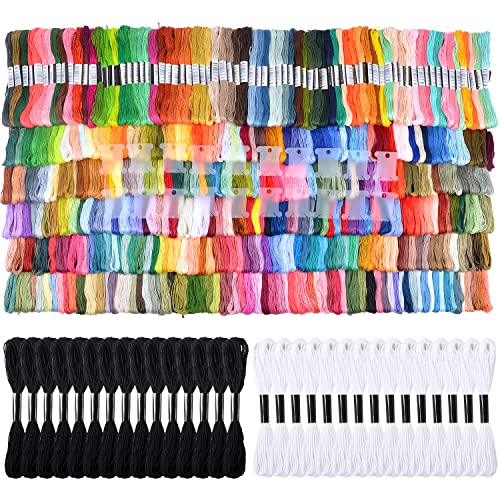 Great Variety of Color: Each package includes 447 colors embroidery floss, 15 skeins white & 15 skeins black color and 20 pcs plastic floss bobbins. The 447 embroidery floss covering rich rainbow colors, suitable for many types of handcraft. Each floss bobbin with corresponding number, so it is effective tidy them and easily find the color you need.