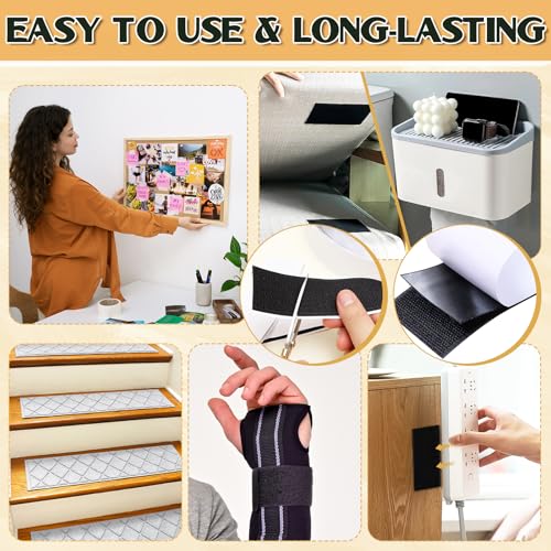 【Easy to Use】The hook and loop tape is designed for quick and effortless peel-and-stick application. You can easily trim it to the desired size using the included scissors, making it a simple solution for securing items without damaging surfaces.