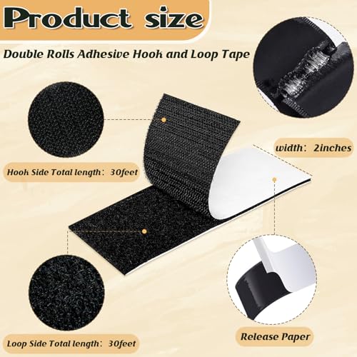 【What You Will Get】Width: 2 inches. Rolls: 2 rolls total, contains 30 feet of self-adhesive hook and loop tape with self-adhesive loop tape. For added convenience, a pair of scissors is bundled with the purchase.