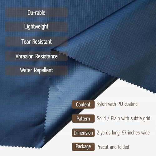 Precut Nylon Fabric (2 Yard x 57 inch) – Water Repellent Ripstop Fabric, Lightweight, Du-Rable – Used for Covers, Flag, Sacks, Upholstery, Tent, Tarps, Kite, Craft and DIY – Navy Blue