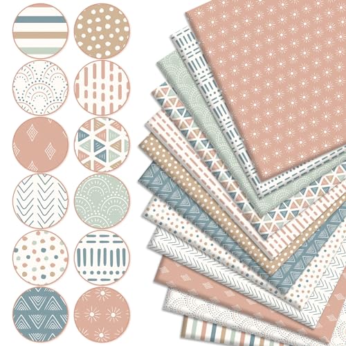 Whaline 12Pcs Boho Cotton Fabric Bundles 18 x 22 Inch Pastel Boho Rainbow Sun Fat Quarters Colorful Quilting Patchwork Sewing Fabrics for DIY Handmade Crafting