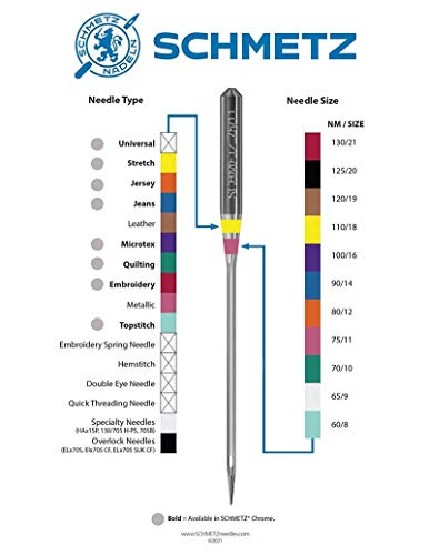 SCHMETZ Universal Household Sewing Machine Needles (system 130/705 H) Assortment. German engineered. Includes three cards of ten needles. Thirty needles total includes the following sizes: six (6) needles size 70/10, nine (9) needles sizes 80/12, nine (9) needles size 90/14 and six (6) needles size 100/16. Household needles have a flat shank. The Universal Needle features a slightly rounded point. A good choice for woven and knit fabrics. This is a great general purpose needle. SCHMETZ Household Sewing Machine Needles work with all household sewing machine brands.