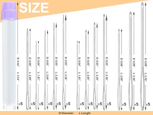60PCS/12Sizes Sewing Needles Large Eye Hand Sewing, Blunt Needles, Yarn Needles, Sharp Needles, Embroidery Needles, Leather Crafting Knitting Weaving Stringing Needles with 2 Needle Threaders