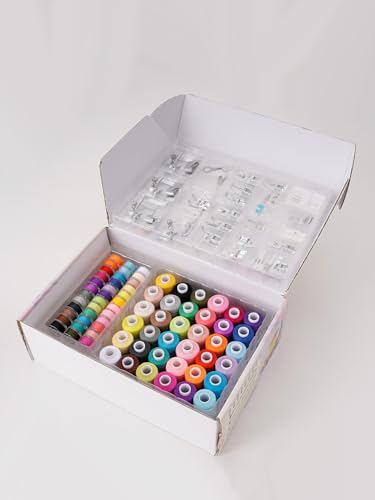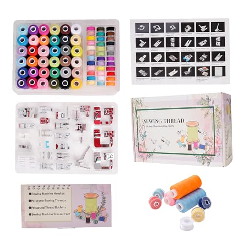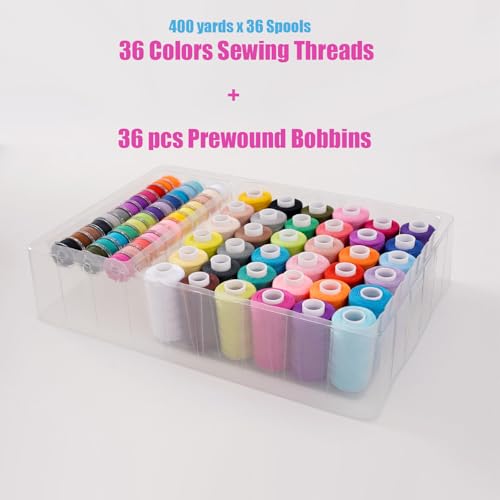 Connimonet Bobbins Sewing Threads Kit,36 Colors Sewing Threads + 36 pcs Prewound Bobbins + 22 pcs Presser Feet Set + 1 Pack Sewing Machine Needle,Sewing Tool fo Sewing Machine and Hand Sewing