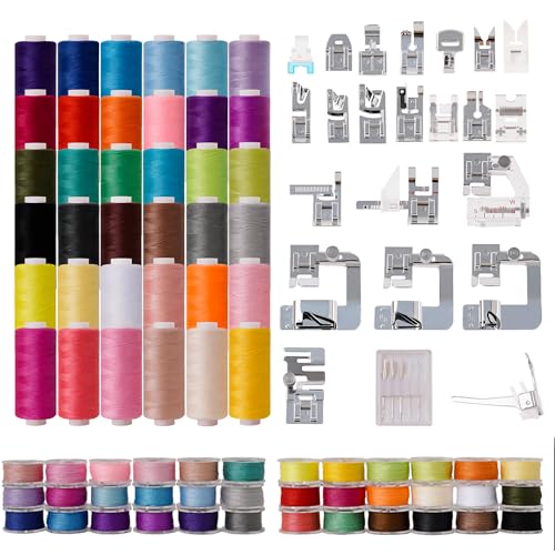 This is a sewing thread and bobbin set.400 yards x 36 colors sewing thread and 36 pcs Prewound Bobbins of the same color series.22 commonly used sewing machine presser feet and 1 box of sewing machine needles. Whether you are a novice or a skilled seamstress, we save you shopping time. Just this set, you can start sewing immediately.
