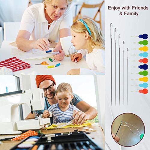 ✔CONVENIENT THREADING: High quality large eye needles are easier to thread compared to traditional small eye needles, we used to get annoyed for threading, but now you can say goodbye to this urgent and frantic feeling, when not using the threader, threading large eye needles is also 3 times easier than ordinary needles, and when the large eye needles are used together with our complimentary threader, you will be able to finish threading needles in seconds, saving your precious time.