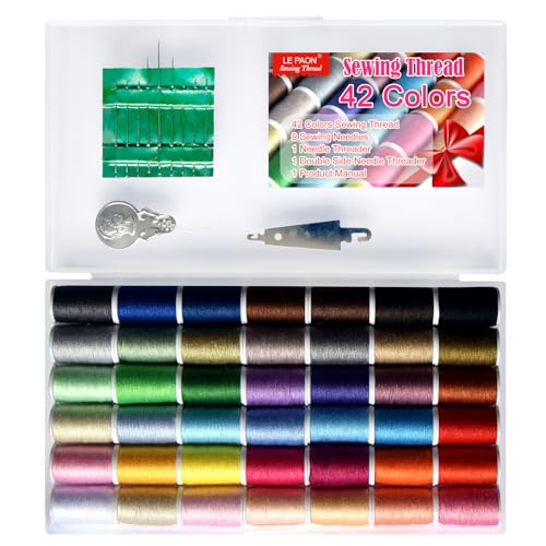 [ Valuable and portable sewing kit ] -High quality threads in 42 rainbow colors sewing thread(45yards/spool)with 9 sewing needls and 2 needle threaders to get you started on any stitching projects and allow you to find the perfect matching color for the mend