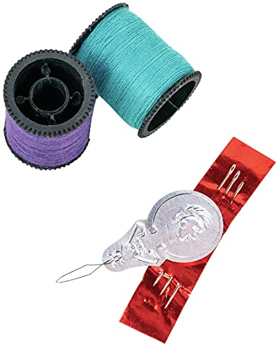 Use this pack of 12 mini-spools of assorted dark colored thread, needles and threader for crafting or simple clothing repairs. A standard beginner’s set or addition to existing sewing supplies, mini spools offer 25 yards of 100% polyester thread each. The bonus needles and needle threader ensure you have all the tools you need to get started.