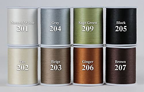 This Neutral Sew Complete Assortment Set includes one 300 yd. spool of each of the following colors: 201, 202, 204, 203, 209, 206, 205, and 207