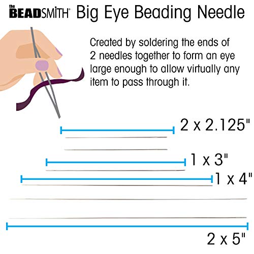 The Beadsmith Big Eye Beading Needles, Assortment Pack, 6 per Card, Sharp Points, Use for General Sewing, Weaving and Embroidery, Very Easy to Thread