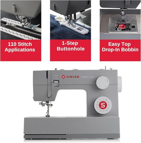 SINGER Heavy Duty Holiday Bundle – 4452 Heavy Duty Sewing Machine with Extension Table & 2 Presser Feet | Strong Motor, 110 Stitch Applications, Full Metal frame, 1-step Buttonhole & LED Light