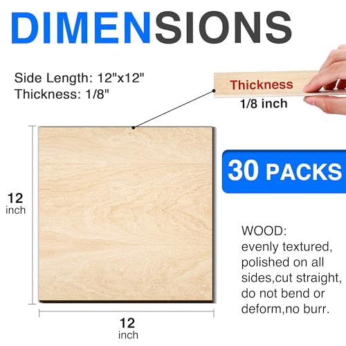 18 Pack Basswood Sheets 12″x12″x1/8″ for Crafts, Unfinished Wood, Basswood Craft Wood Board Perfect for DIY Ornaments and Models Drawing Painting Engraving Wood Burning and Laser Cutting.